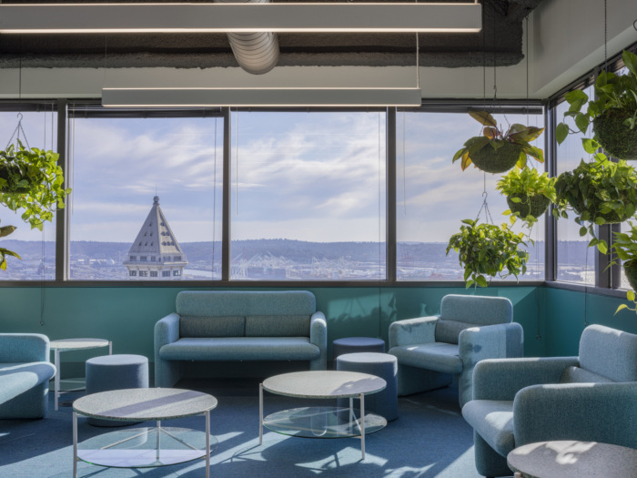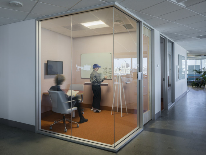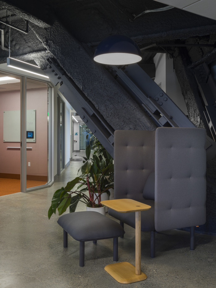 在这个办公室环境装修设计项目中必须有鲜艳的色彩-来自医疗领域,许多团队成员认为传统的医疗空间(甚至办公室)通常是通用的,几乎太中性了。图书馆和周围休息室的色彩爆发有助于消除这种陈规定型观念,地毯和饱和家具的精心更换会在整个办公室内营造出这些色彩斑斓的时刻。