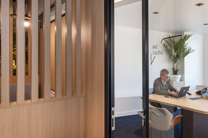 整个办公空间融入了许多天然无日常的雕塑形象,体现了一种崇尚品质的工匠精神。灯光采用柔和的淡黄色,给整个办公室增添了温暖。自然景观元素适时加入,使得空间生机盎然。