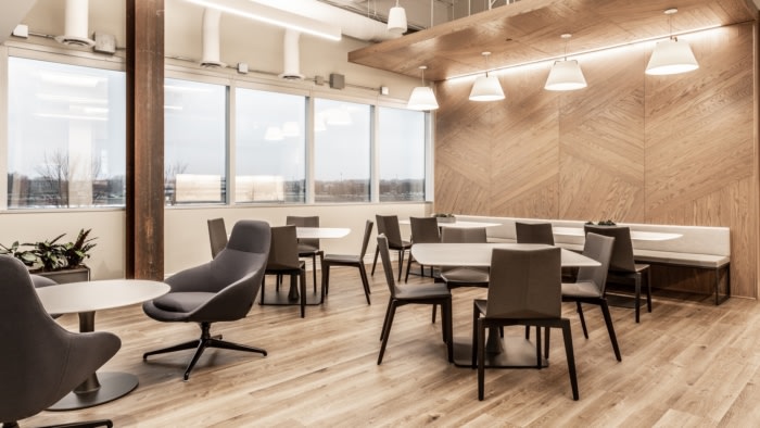 通过展示现有的钢梁,我们将原始特征引入与精致设计元素并列的空间,最后的修饰和植物在整个更新的过渡办公室中唤起了热情好客的氛围。#医药公司办公空间设计装修#