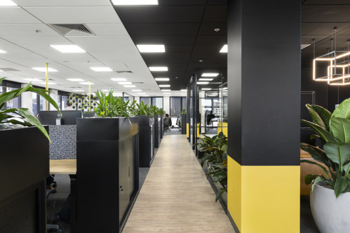 工作场所的文化和连通性很重要,因此设计具有多个休闲会议区和一个大型休息空间,鼓励员工离开他们的工作站并进行协作互动。设计师以黄色和黑色的配色方案呈现主题,为空间增添了活力,与别致的黑色天花板相得益彰,并配有创意矩形吊灯。最终的结果是,打造了一个给客户和员工留下深刻印象的空间。