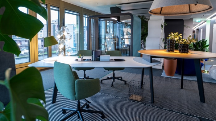 该概念是与瑞士海沃氏密切合作开发的,展示了现代开放式工作空间的复杂性。色彩概念、使用的家具、个性化的照明设备和配件使空间感觉温馨而活泼,同时将其组织成不同的区域。