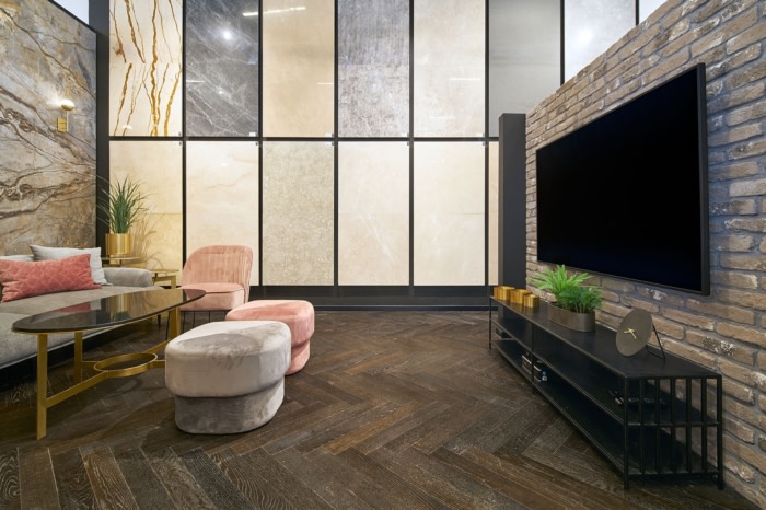 设计师用极简主义细节装饰的混凝土天花板成为了空间的中心特征。最后,咨询亭被放置在房间的中央,以传达开放性和可用性的信息;这与指导接待台设计的原则相同,这是一个由木头制成的低矮结构,邀请客户进行咨询。