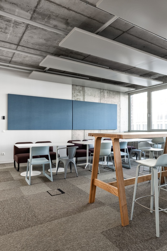 在四个多空间楼层上创建了许多团队空间、开放式交流和集中区域,以提供满足员工不同要求的灵活工作选择,这些新的工作场所模型由具有工业特色的建筑构成。高比例的裸露混凝土和开放式技术装置突出了这种设计。充满活力和活泼的色彩组合搭配各种舒适的家具,邀请人们流连忘返并交流想法。#广州室内装修设计#