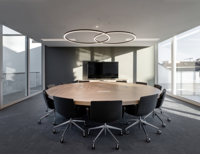 分布在每层楼的办公室装修装饰体现了对卓越设计的选择,家具将简约的颜色和形状与优雅的饰面融合在一起,包括木板木类型的选择和位于极具代表性的会议室中心的大桌子,位于大楼的最后一层。