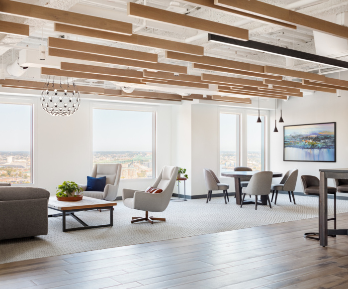 企业办公室有很多机会通过定制设计细节脱颖而出,包括开放式天花板区域的浮动木饰面挡板、带有定制标志的热轧钢板、独特的木制品接待台和优雅的橱柜。企业、设计团队和团队的其他成员带来了不同程度的专业知识、洞察力和品味,以创造出杰出、独特和成功的办公室设计。