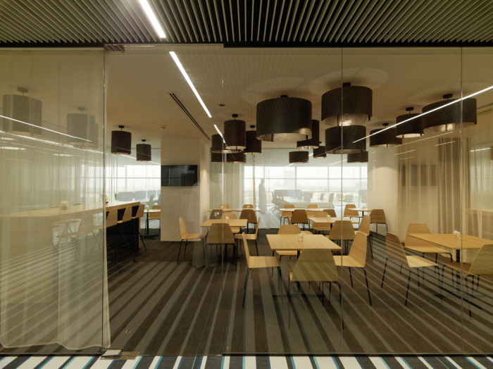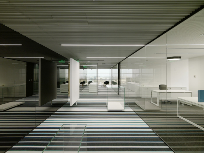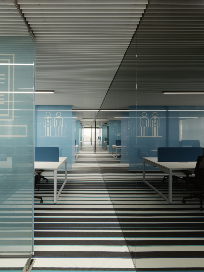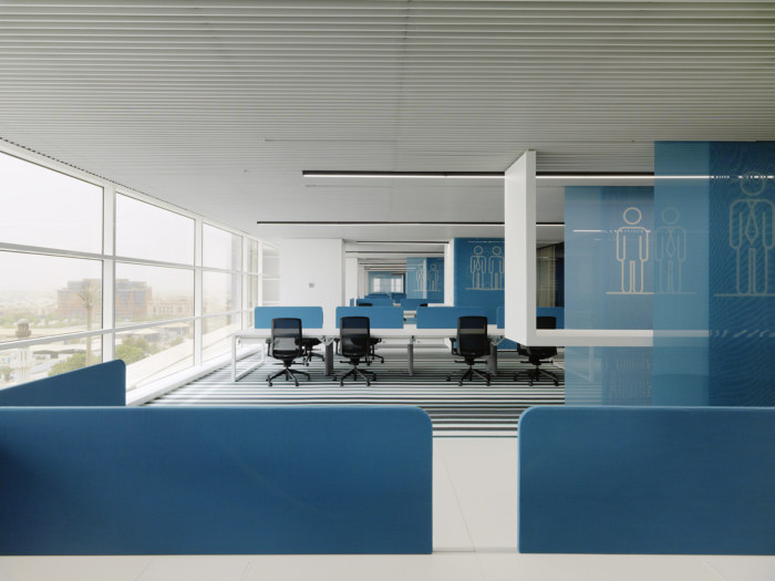 各种单品,彩色玻璃立方体创造了一个带有小巷和广场的村庄般的结构,可以促进和增强人们的互动,同时提供隐私和专注的空间。它的结构设有会议室、祈祷室、自助餐厅、游乐场、开放式会议空间和其他服务设施,由开放的工作区线包围,位于窗户的两侧。为所有员工提供户外景观,工作区设有私人飞地,组织开放空间并为电话亭、媒体亭和创意或非正式会议提供多种功能。