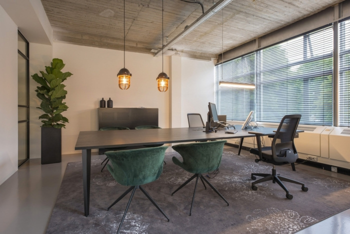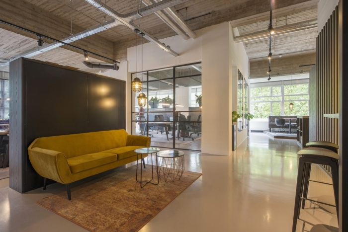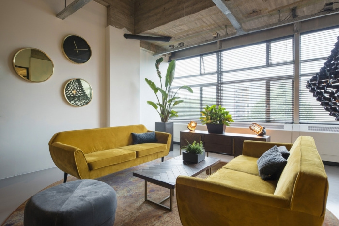 办公室设计是在混凝土原始建筑内完成的 以暖色调作为对比