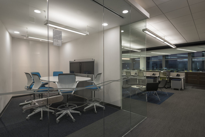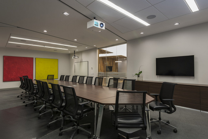 以与内部的立面关系和更好地利用自然光为出发点,除了平面图的矩形配置外,该项目还解决了沿整个布局相交的两个主轴。产生由中心的服务核心连接的四个分开的协作区域。#办公室设计图#