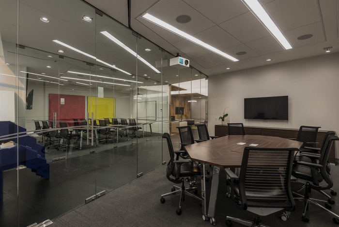 大堂是主轴几何功能的宣言,这一理念贯穿于玻璃和木质模块,旨在解决用作接待室、候诊室和会议室的空间,投射出精致和透明的形象,在不同的用途中共存。