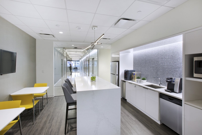充足的光线和城市景观,干净、清爽的办公室内部没有干扰。它们还具有全玻璃正面,使自然光能够穿透核心空间。为访客和员工部署了以商务为中心的多功能空间,供访客和员工选择他们希望工作的环境。带餐饮设施的非正式休息空间、安静的低头飞地和技术密集的会议室都协同工作,连接到公司办公室的全国网络。
