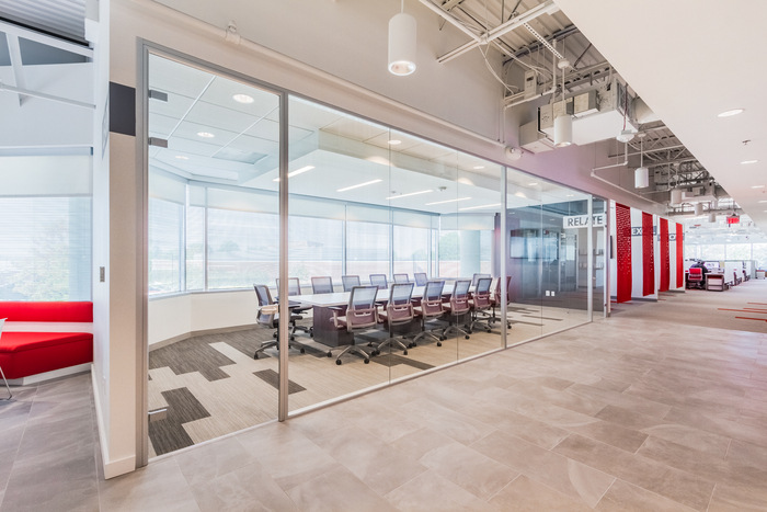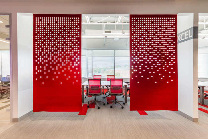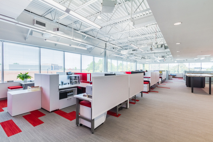 办公室设计目标是鼓励员工之间的思想交流,并为来访的客户、分包商和供应商创造通过办公室的视觉之旅。
