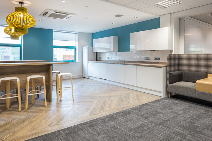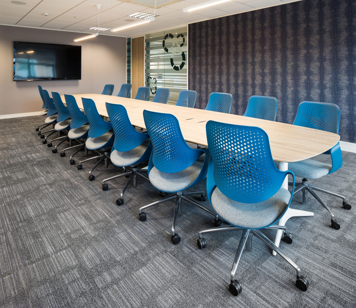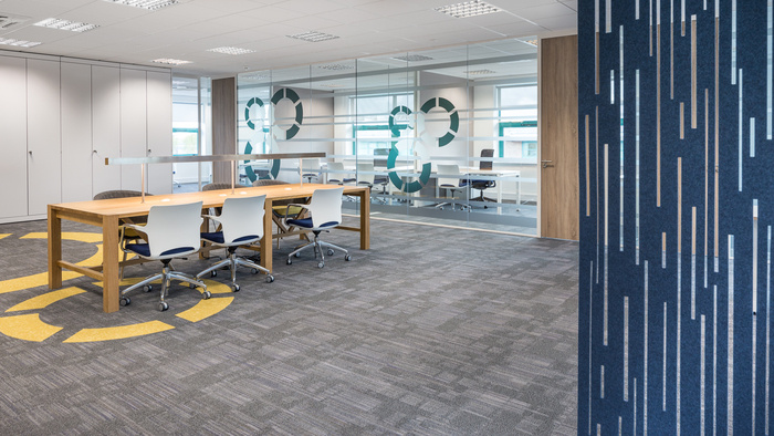 品牌通过装饰定制墙壁和玻璃隔板的各种墙壁乙烯基巧妙地传播到整个设计中,它辅以特别设计的标志方块 。最终的结果是一个办公室从一个区域无缝地流向另一个区域,但在声学上是平衡的,这样每个区域都不会干扰另一个区域。#办公空间设计#