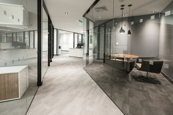 设计师在办公室的每个空间上结合了永恒和自然的饰面,如混凝土、木材、玻璃和地毯。该项目的外观和感觉展示了冷暖饰面之间的完美结合,以自然和人工照明作为对比焦点。#办公室装修效果图#