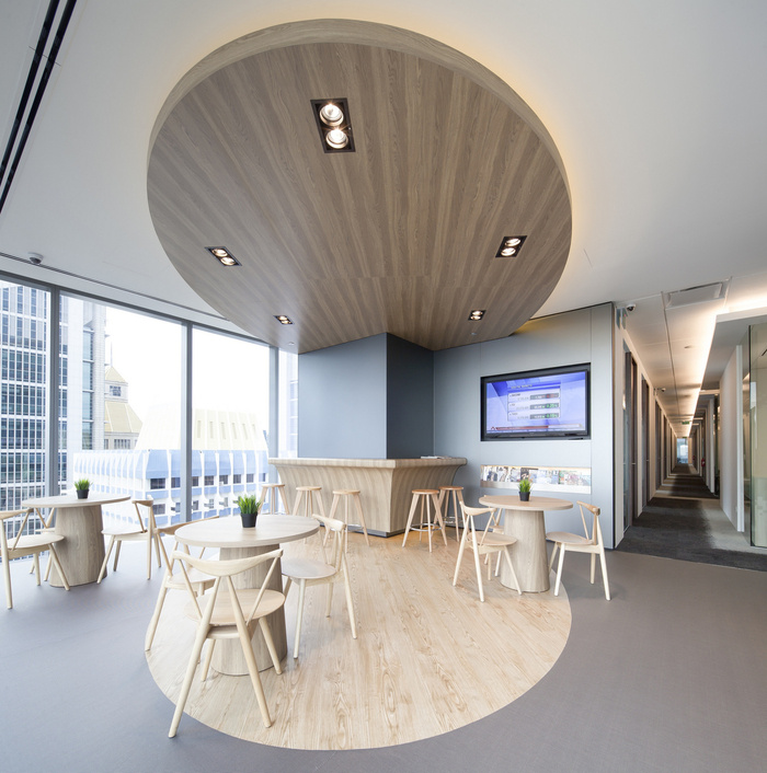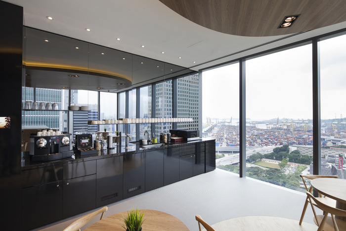 空间的活力超出了其物理楼层空间。充分利用亚洲广场大楼的玻璃幕墙,天花板高度的玻璃板被用来区分不同的区域。除了最大限度地提高自然光的渗透率,这些玻璃面板的战略性使用促进了物理隔离空间之间的视觉连通性和互动。随着人们在透明玻璃面板后面一览无余地欣赏新加坡壮观的城市天际线,这种开放性和边界的相互作用进一步增强。