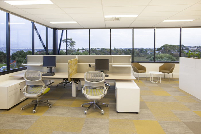 设计团队战略性地将开放式区域放置在靠近自然光的地方,从而几乎可以公平地欣赏美丽的景色。#广州办公室装修#