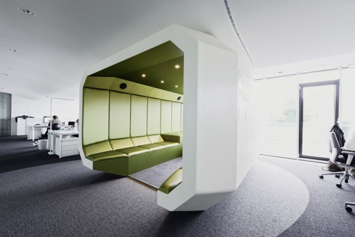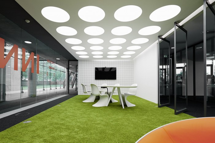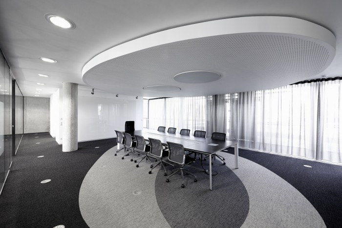 活力和动感是设计的关键特征,员工和访客一进入宽敞的接待大厅,就会被他们同化。这些设计元素将引导您穿过开放式工作区和专门创建的员工图书馆,直至位于五楼的内部健身房,可欣赏法兰克福的壮丽景色。