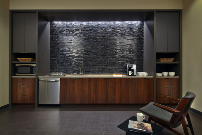 技术的整合对客户也很重要,因此对定制木制品细节给予了关注,尤其是休息室的媒体墙,这些元素旨在巧妙地隐藏支持公司日常业务开展方式所需的 IT 基础架构 。#办公室装修设计#