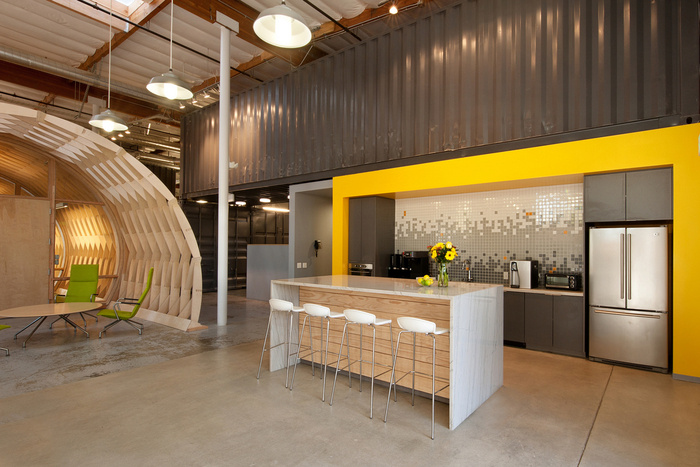 带有原生植物和适应性植物的室内花园过滤办公室空气,并与自然建立联系。花园由员工浇水和维护。除了室内花园,办公室的“后院”正在种植一个菜园,面向住宅开发。”