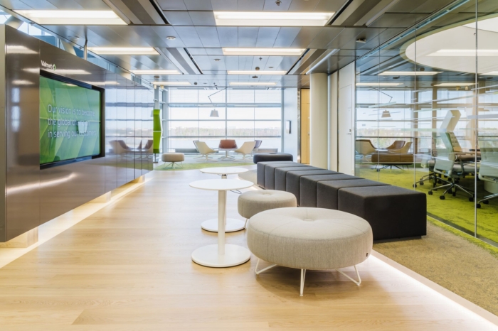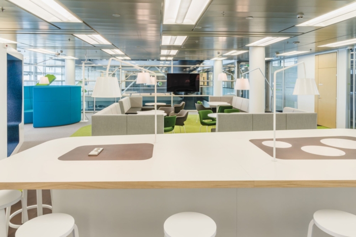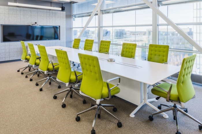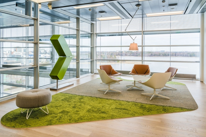 强调色绿色来自公司标志。绿色也反映了自然,业务来自的森林和树木。外墙是落地窗,办公室室内设计为海景提供了空间并与之相得益彰。内部结果是一个和谐的空间,完美地支持组织的新特征、文化和品牌,并与目标一致。