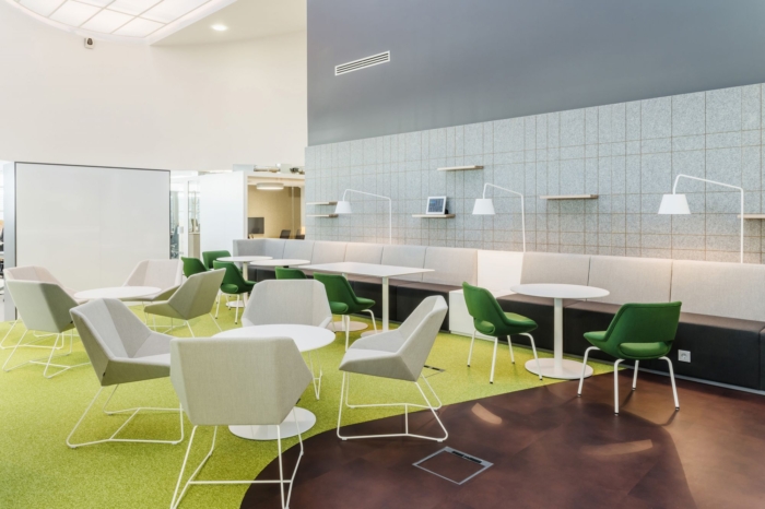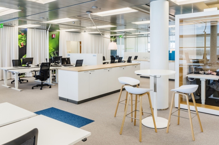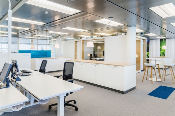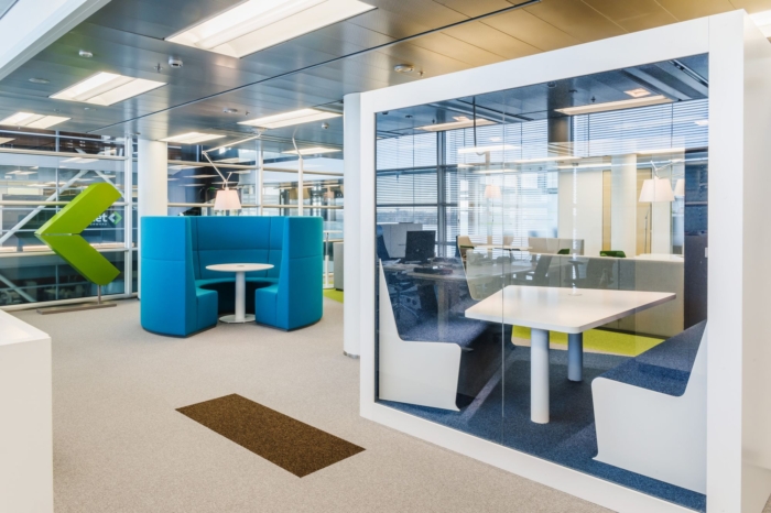 新办公室是一个基于活动的创意空间,它使用了传统房间办公室和开放式办公室的最佳元素。办公室布局为封闭式办公室、开放式工作区以及项目和会议室。房间确保个人或小组工作的和平和人体工程学,开放和封闭的空间共同为一系列工作任务提供了多种设置。通过使用家具元素,例如电话亭、更具适应性和灵活性的会议舱空间。