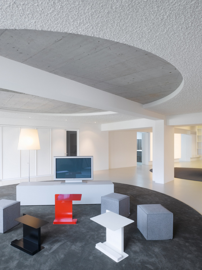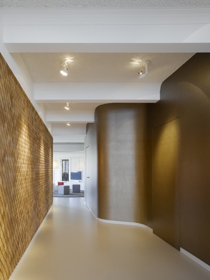 在这个项目中很难找到没有经过深思熟虑的细节。为了在进入时立即吸引游客的注意力,接待台由裸露的粗糙混凝土制成,当然,它靠在原始的白色桌面上。#办公楼设计装修#
