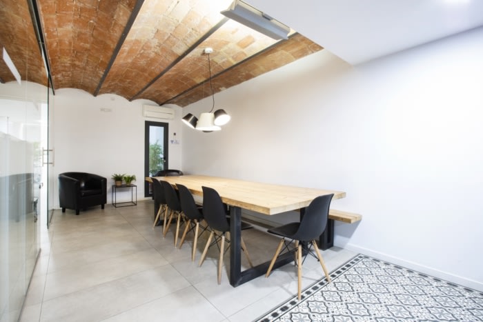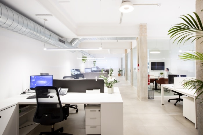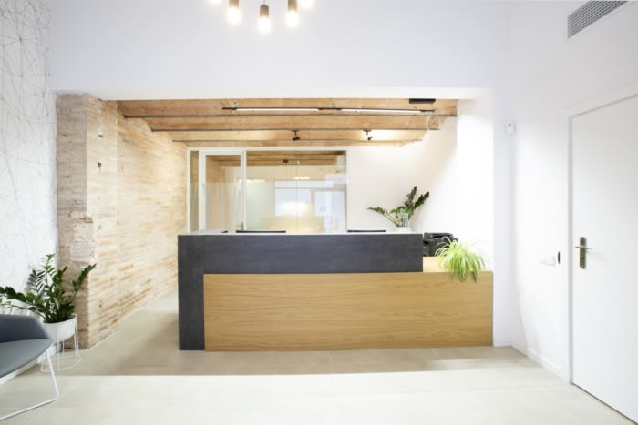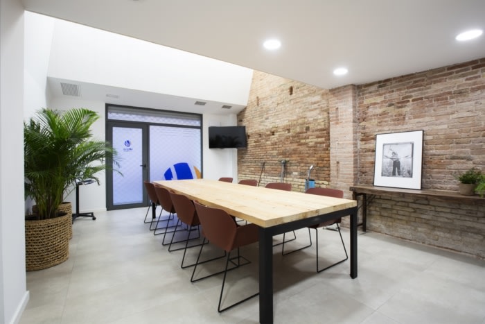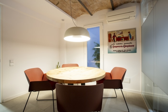 为了让更多的自然光线进入,设计师扩大了立面窗户的尺寸,从一个黑暗狭窄的空间变成了一个明亮宽敞的开放工作空间。结果真的很壮观,因为设法在他们的办公室展示了急需的视觉清洁,室内设计将空间的原始材料与家具和绿色植物中的色彩混合。