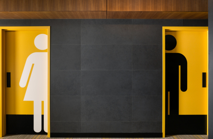 办公室采用现代设计,使用玻璃、拱肩和金属板材料。入口区域具有独特的几何形状,以提供遏制吸引力,并充当与街道平行的大型行人天篷并连接两个建筑物入口的媒介。#办公室设计装修公司#
