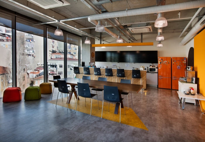 在设计师设计伊斯坦布尔这家物流公司办公室时,他们想强调物流部门使用的工具。通过这样做,重要的一点是避免员工因所在部门的日常用品而感到疲倦,为此设计师尝试以谨慎的方式使用这些元素除了帮助概念之外,这还旨在帮助访客直接找到他们在办公室里。#办公楼办公室设计#