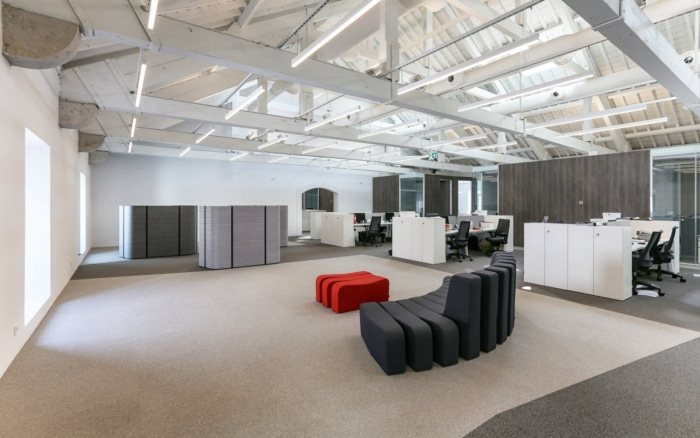 办公楼还配备了带美食广场的中间楼层,旨在强调同事在空闲时间之间关系的重要性。在上层,屋顶由现有的木结构支撑,主要走廊达到10米的高度。