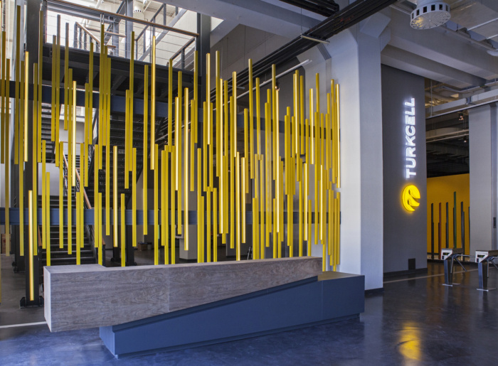 独立于墙壁和天花板的会议室、休息室和研讨厅被设计成不同材料和颜色的浮动盒子,旨在打破现有结构的统一性。这些单元被认为对所有写字楼办公室都可以轻松到达的共享空间开放,同时提供具有不同天花板水平的人性化尺度,以及在空间内创造空间的想法。#写字楼装修#