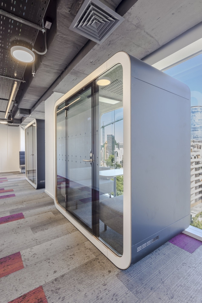在广场的北面和南面,可以找到工作区。在东边你可以看到安第斯山脉,在西边你可以通过电梯离开这个空间。电话亭位于通往开放区域的走廊上。我们创建了一个由非正式会议区、阅读点和封闭式创意室组成的网络。