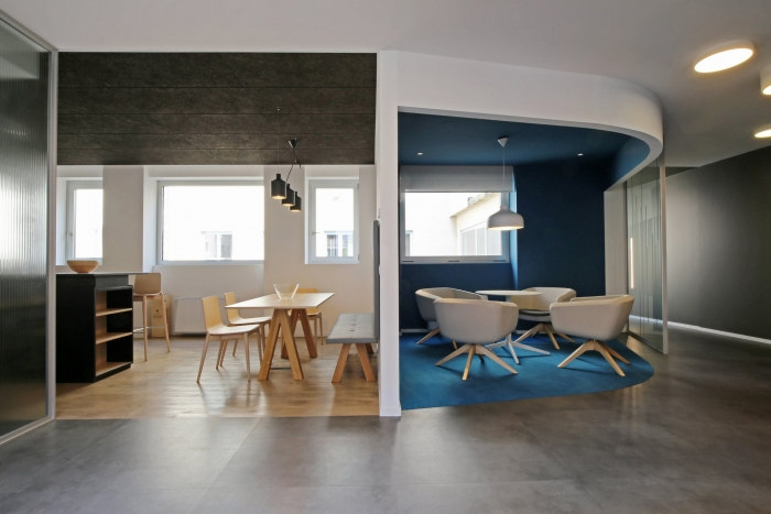 浅色木材、混凝土质地、灰色阴影和颜色的使用是调色板的特征,照明项目的特色在于强调不同的工作环境。
