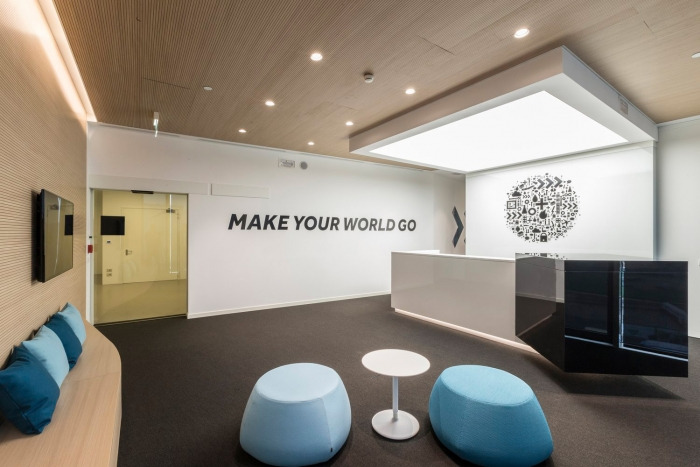 办公空间内的深色地板搭配活泼的色彩和俏皮的图形,特别体现在标牌和展示中,以及非正式空间中的微妙口音。休息室和非正式等候区采用柔和的色调和自然的饰面,包括接待处内的单线木质宴会座椅。