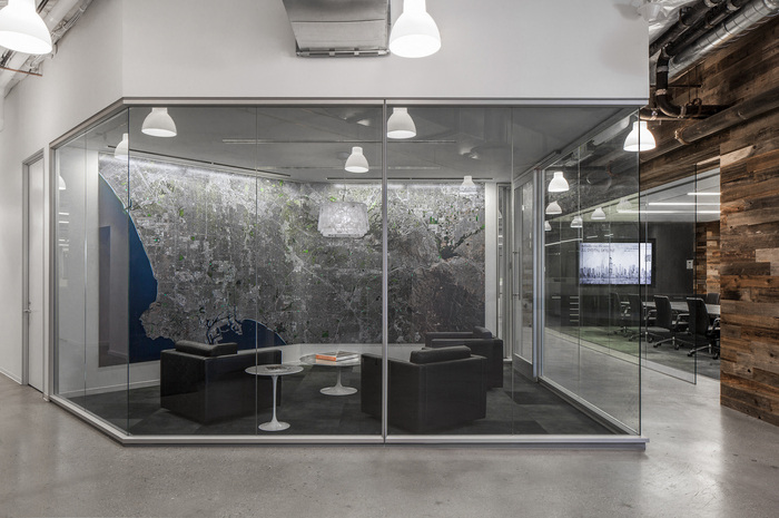 来到这间办公室的访客会立即感到舒适,可以在空间中漫步并享受一览无余的全景。调色板混合了冷灰色和暖棕色,而两堵活墙和再生木墙覆盖物将室内空间与太平洋田园诗般的自然美景连接起来。#广州办公室设计装修公司#