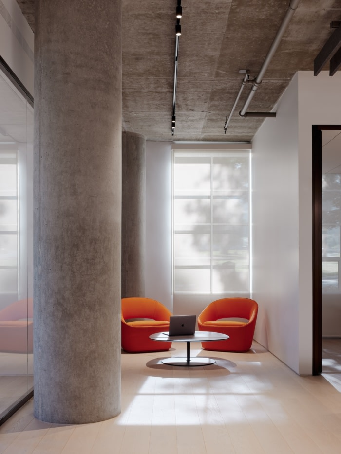 一家致力于发展生物技术公司的风险投资公司,它要求设计团队创造一个平静的、节奏缓慢的空间,具有宁静的视觉密度。封闭式和开放式办公空间的平衡提供了收集和分离的机会。玻璃系统最大限度地提高了开放性,并结合自然饰面和色调,与郁郁葱葱的外部景观建立了联系。#办公室装修公司哪家好#