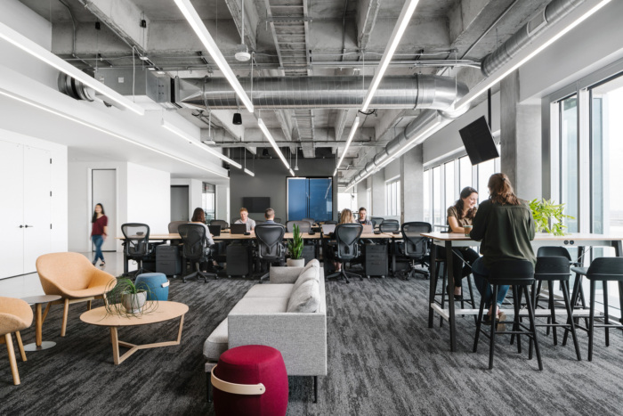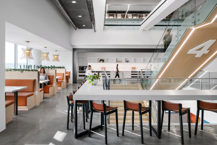 通过结合本地原材料、鲜明的品牌色彩和技术,以及可以形成连续的线条,将人们联系在一起并鼓励合作。空间设施包括作为会议空间的气流拖车、自助餐厅、咖啡室、礼堂和健身中心等。#办公楼装修设计#