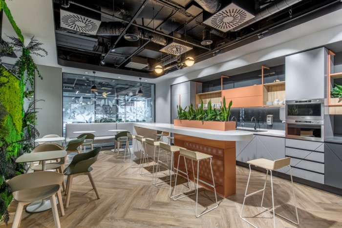 以人为本的设计方法反映了客户的愿景和价值观,并通过重新思考我们与自然的内在联系来关注人们的福祉。这使设计师基于亲生物设计原则提出了“绿色”工作场所概念,帮助企业创建了一个能够激发创造力、支持生产力并照顾员工福祉的生态系统。#佛山办公室装修案例#