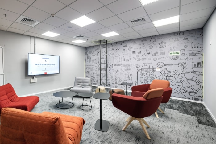 在设计公司的新办公室时,设计师强调使用与医学界建立联系的元素——脊柱、椎骨和连接器,并应用了美学和流线型的设计语言。通过在中央自助餐厅空间中使用类似于脊柱曲线的凸形天花板创建了一个设计序列。天花板元素在地板上收到了“响应”,地板上包含镶嵌在混凝土地板上的木纹瓷砖。#公司办公室设计#