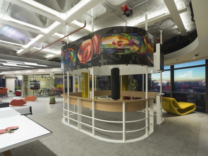 通过在立面和工作区之间创建一个二级流通区,创造了一个提供不同功能的空间。由于这些区域靠近工作空间,因此与在普通会议室中相比,在这里作为团队工作要愉快得多。这样,减少了预订房间和集合所需的时间等消耗时间和注意力的因素。#办公室装修设计公司#