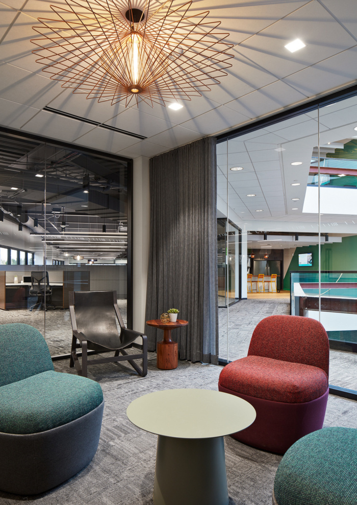 反映他们对平等环境的承诺,该建筑包含最少数量的私人办公室,最大化工作站,并在整个建筑中提供多种尺寸的会议、焦点和协作空间。考虑到从协作工作流程到符合人体工程学的家具的方方面面,最终的设计体现了空间大小的一致性、便利的办公设施以及无缝的技术集成。#企业办公室设计案例#