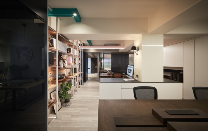 实用方面是本项目的设计宗旨。我们选择了各种不同的材料,并以一种直观而显眼的方式将它们布置在室内。其目的是希望客户在参加会议时,就像参观材料展厅一样。通过与设计师讨论配置或材料,他们可以触摸和评估材料的实际效果和应用,而不仅限于模糊的想象。#办公室装修案例#