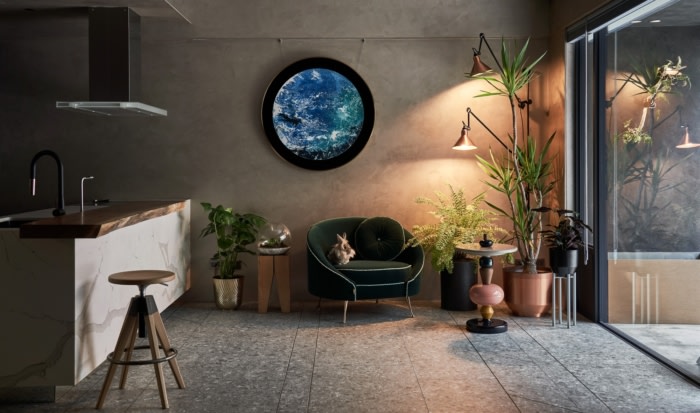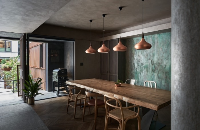 设计师使用了特殊的油漆,并用化学品一层一层地清洗。随着时间的推移,它被叠加和刮擦以创造一种自然形成的不可预测的纹理。整体空间采用了中性的底色,铺满了在天花板和墙壁上流动的手感折痕,仿佛一个寂静的时空,让痕迹展现生活中最感人的事物。#办公室装修设计#