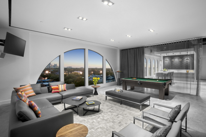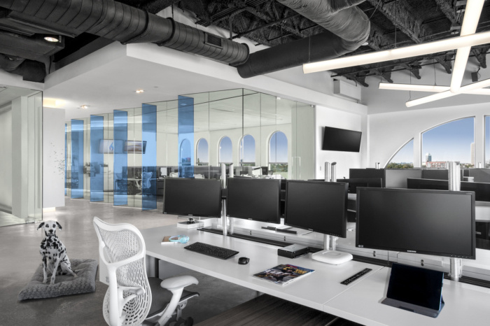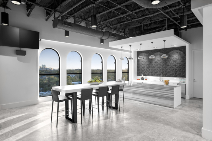 通过深思熟虑的空间规划、室内体量和材料选择,设计团队满足了公司的空间形式和功能需求,并为所有员工创造了一条视线,无论是在办公桌上还是在休息室,都能看到壮观的天际线景观。建筑团队向外部开放了三个视图,增加了可用的自然光。此外,内部玻璃隔断的战略性使用允许部门之间进行视觉交流。#办公室空间设计#
