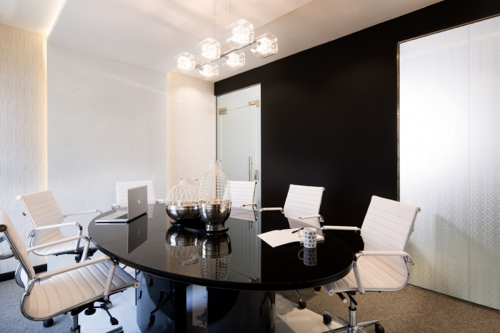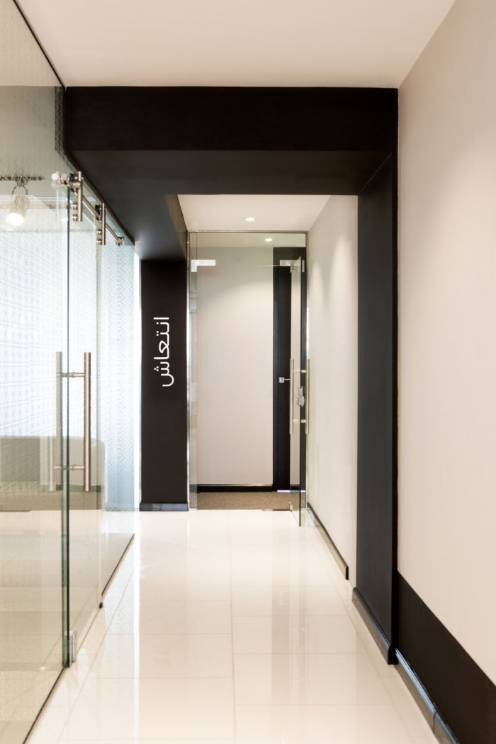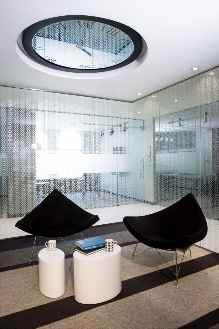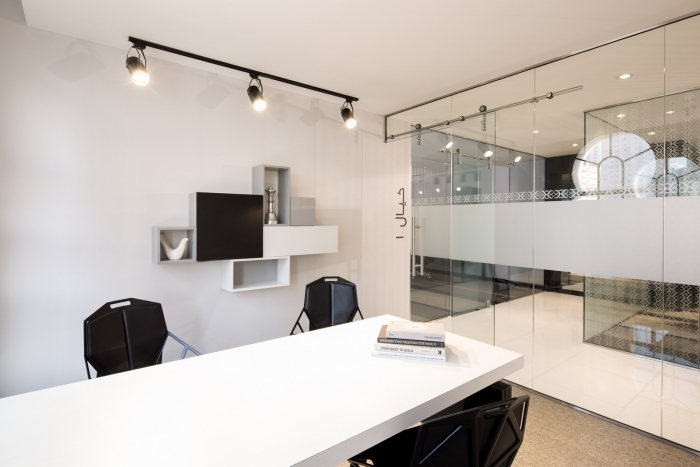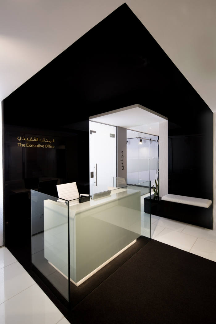 “延续”或“扩展和增长”成为设计概念的中心主题。黑色丝带元素代表了abaya(女性传统服装)优雅而有力地在空间中流动,汇集了所有独立元素;反光的白色背景暗示了 kandura(阿拉伯男士的传统服装)的颜色。#办公室高档装修公司#