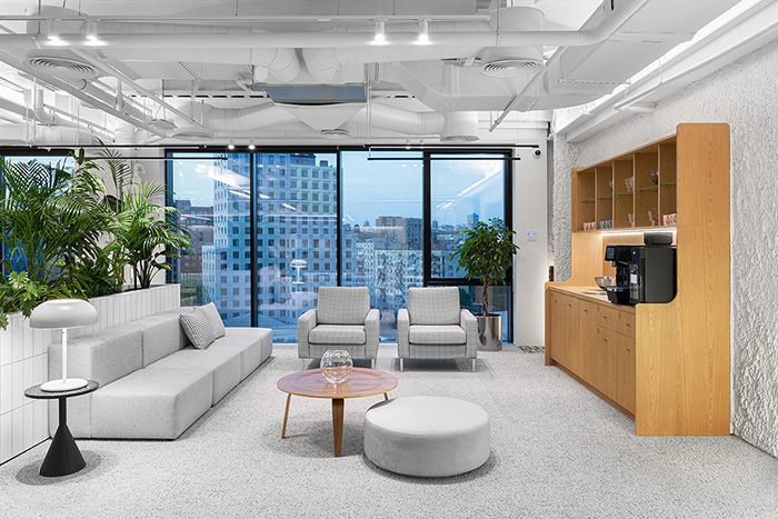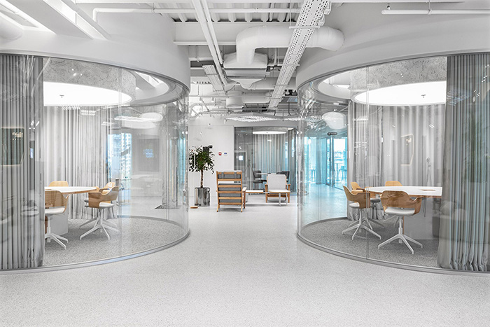 由于建筑的传统构造严格限制了实现多层级共享立体空间的构想,因此,在规划上只能让每个楼层自给自足,各楼层都设有大型多元的公共活动区域。#办公楼设计装修公司#