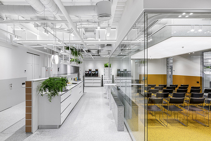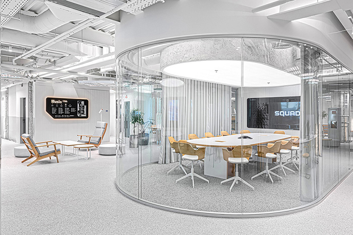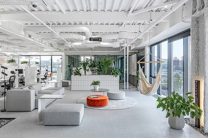 新办公场所位于基辅市中心一座翻修过的工厂大楼内,共占据五个楼层,将SQUAD原本分散于四处的部门都统一在同一屋檐下。该项目的设计概念是创建一个可随时微调、具有超强适应性的生态工作系统,这样即使在不确定的疫情期间也能优化工作流程和效率。#办公楼设计装修#