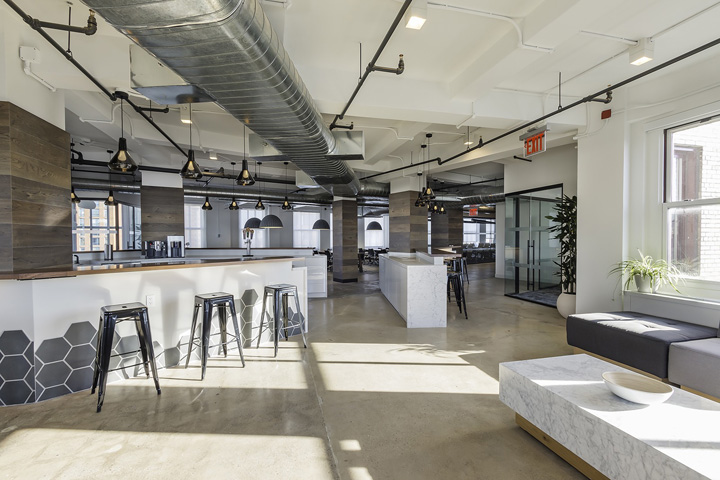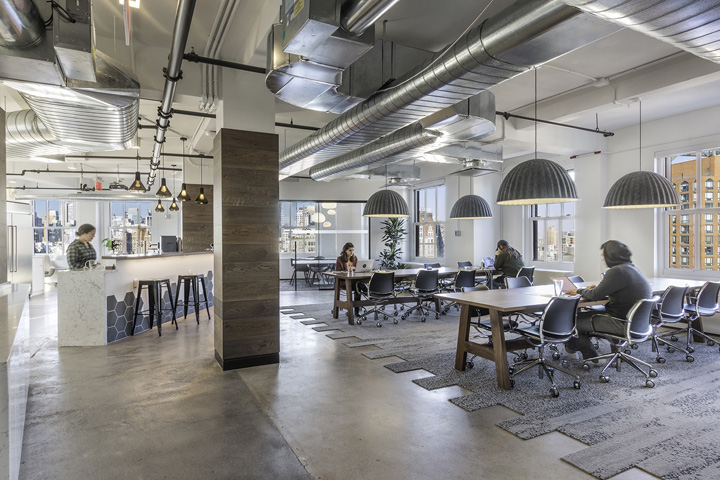 办公室设计:彻底抛却传统的“企业”模式 空间洋溢着简约的工业风氛围 日期:2022-9-13 11:18:07 人气:253 设计团队将美学与功能融为一体,让空间更具多元化用途;彻底抛却传统的“企业”模式,从家居与酒店的环境中寻找设计灵感。#办公室设计公司#裸露的顶面和设备管道、混凝土地坪、深色木板、六边形面砖、特色灯具和家具,让这里洋溢着简约的工业风氛围。运用最新日光传感器和调光器等设置,让这里从白天的会议空间自然过渡到夜晚的酒店般休闲氛围。#办公室设计案例# 上一篇: 办公室装修设计:通过配色、照明和家具以及大量温暖情怀的元素去打造空间 下一篇: 办公室装修方案:沉稳的设计语言加入趣味性的元素 传达出企业创新探索的一面…
