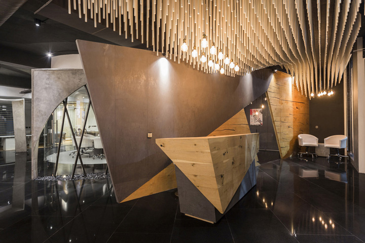 办公室装修:接待区波浪般的立体造型营造出戏剧般的空间场景