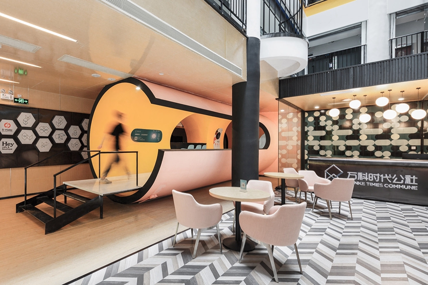 这是杭州的一个科技园区,这种办公楼装修风格可以说是非常棒了,给来访者带来如旅行般的视觉感受。坐着观光电梯往上走,无差别的中庭立面静中有动、动中又静,原始构造和视觉感受决定了从刨立面出发,内向操作的工作方法来打造一个小型综合体。