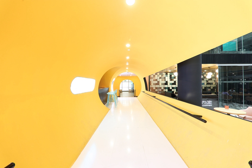 这种“动态”设计在视觉上有一点挑战,拒绝千篇一律的风格,通过对立面处理试图打破各层之间明确的空间界限,每一个角落都是焦点,第一处设计都是与众不同的风景,带着旅行的心情去看看吧。